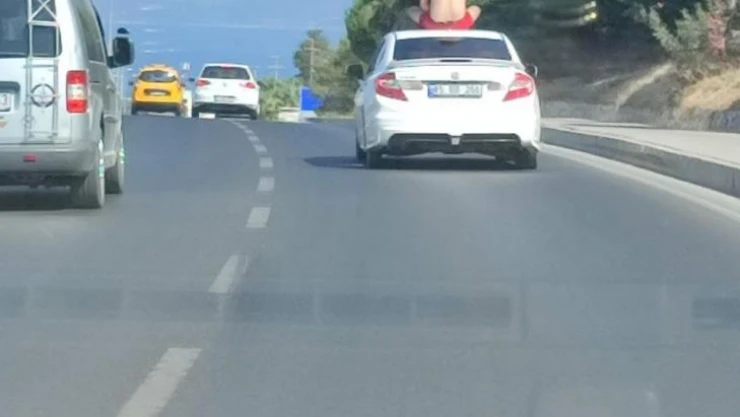 Kuşadası'nda seyir halindeki otomobilin tavanında oyun oynayan kişiye ceza yağdı