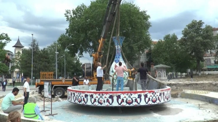 Kütahya'da 'Kent Meydanı' projesi nedeniyle şehrin sembolü vazo ve Atatürk anıtı taşındı.