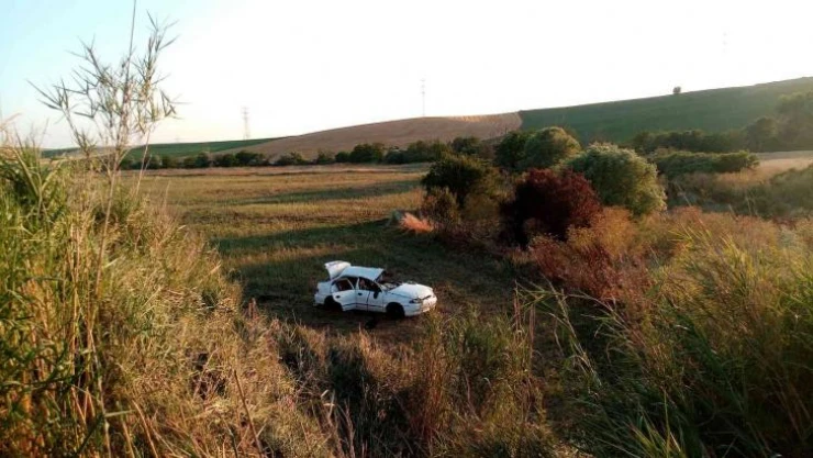 Lastiği patlayan otomobil metrelerce yüksekten tarlaya uçtu, emniyet kemeri hayat kurtardı