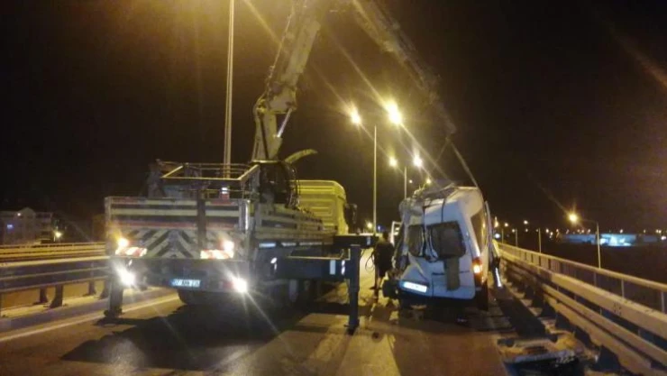 Kazanın, lastiği patlayan minibüsün sürücüsünün aracı yolun sağına çektiği sırada meydana geldiği bildirildi.