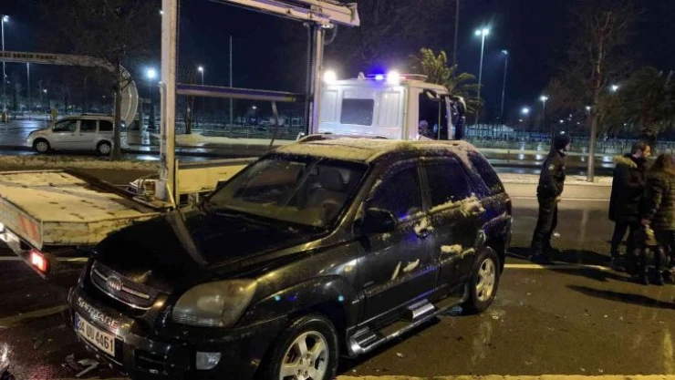 İstanbul Maltepe sahil yolunda alkollü sürücünün kullandığı cip, yol kenarında park halinde bekleyen otomobile çarptı.