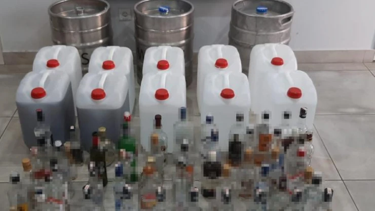 Manavgat'ta otel odasında 387 litre sahte içki ele geçirildi