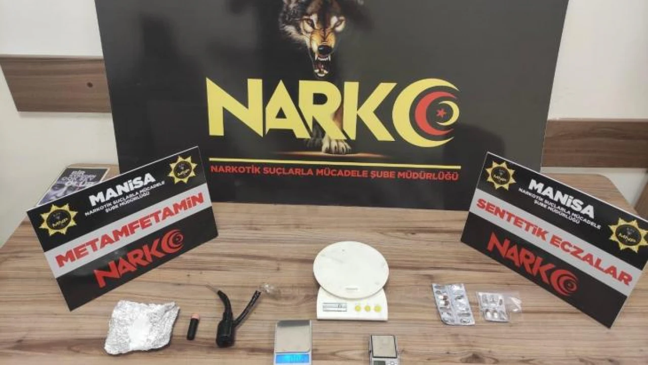 Manisa İl Emniyet Müdürlüğü Narkotik Suçlarla Mücadele Şube Müdürlüğü ve Asayiş Şube Müdürlüğü görevlilerince uyuşturucu veya uyarıcı madde ticareti yapan, nakleden ve kullanan şahıslara yönelik yapılan çalışmalarda, Yunusemre ilçesinde durdurulan şahısların üzerinde ve bir şahsın kaldığı otel odasında yapılan aramada, 2 parça halinde 7,18 gram metamfetamin maddesi, 5 adet sentetik ecza hapı, 3 adet hassas terazi ele geçirildi.