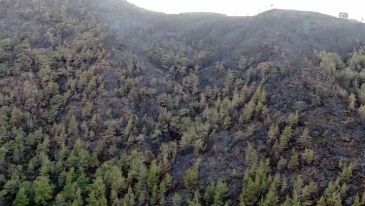 Marmaris'te yürekleri dağlayan kara tablo havadan görüntülendi