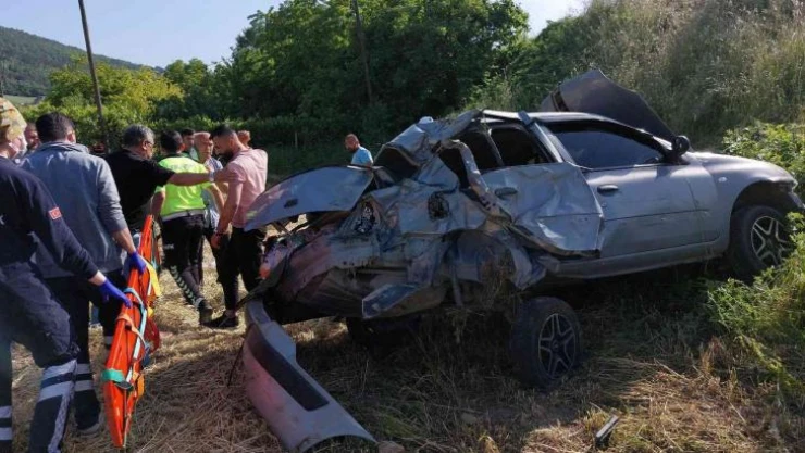 Mevlit dönüşü takla atan otomobil şarampole yuvarlandı: 1'i ağır 4 yaralı