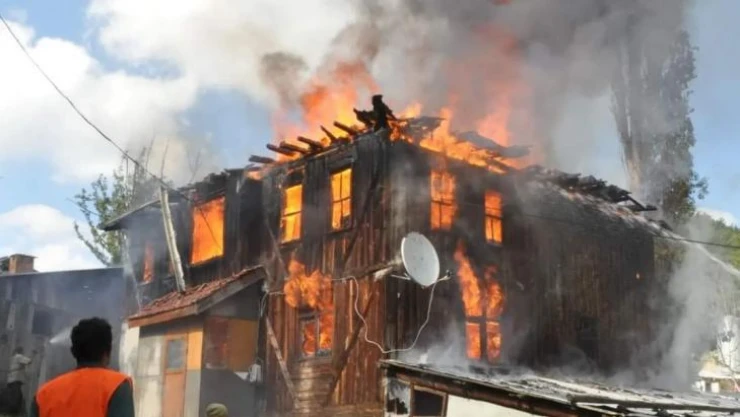 Bolu'nun Mudurnu ilçesinde 2 katlı ahşap bir ev, çıkan yangında tamamen kullanılamaz hale geldi.