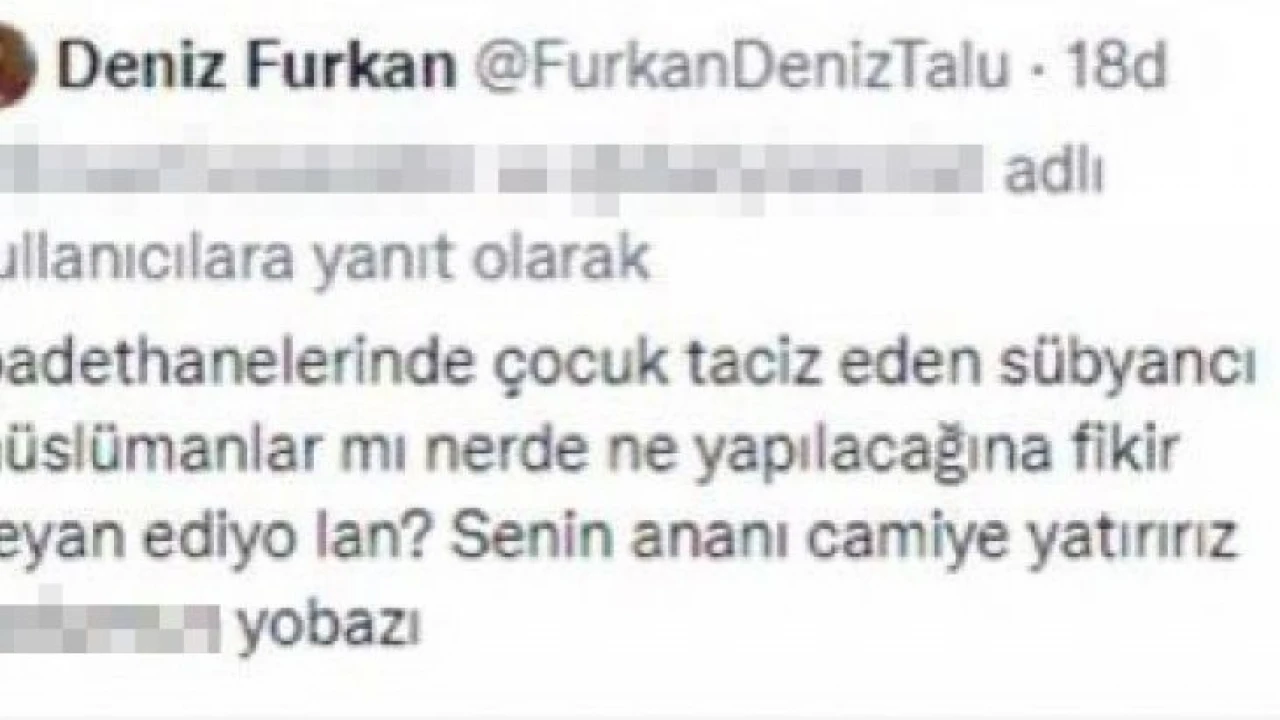 Edinilen bilgiye göre, sosyal medya hesabından yaptığı İslam Dinine ve Müslümanlara yönelik ağır küfürler içeren paylaşımları infiale neden olan Deniz Furkan Talu adlı firari şüpheli, kolluk kuvvetlerince her yerde aranmasına karşın henüz yakalanamadı.