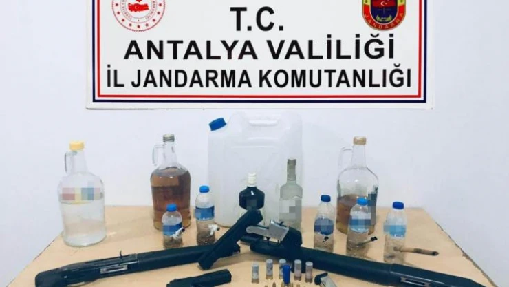 Edinilen bilgiye göre, Antalya İl Jandarma Komutanlığı İstihbarat Şube Müdürlüğünce yapılan çalışmalarda; Taşağıl Mahallesi’nde bulunan ve işletmeciliğini A.K. ve M.K. isimli şahısların yaptığı müzikholde Antalya Manavgat Cumhuriyet Başsavcılığı koordinesinde arama yapıldı. Taşağıl Jandarma Karakol Komutanlığı Asayiş ekipleri ile birlikte gerçekleştirilen aramada; 10 litre sahte alkol, 5 adet uyuşturucu kullanma aparatı, 1 adet ruhsatsız tabanca ve şarjörü, 2 adet ruhsatsız pompalı av tüfeği, 1 adet özel yapım tabanca görünümlü tüfek, 8 adet 9 milimetre çapında tabanca fişeği, 6 adet av tüfeği fişeği ele geçirildi.