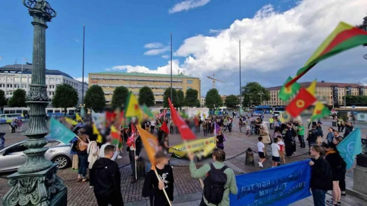 Türkiye, İsveç ve Finlandiya arasındaki NATO üyeliğine dair müzakereler devam ederken, İsveç'in Göteborg şehrinde terör örgütü PKK/YPG yandaşları ellerinde terör örgütünü simgeleyen paçavralar ile sokağa indi.