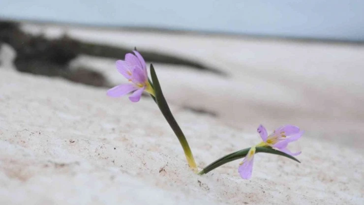 Nemrut'ta karlar arasında açan kardelenlerin güzelliği