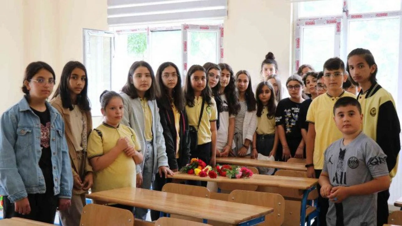 Kırşehir'de, hayatını kaybeden ortaokul öğrencisi için sınıf arkadaşları ve öğretmenleri okul bahçesine çam ağacı dikerek sırasına karanfil bıraktı.