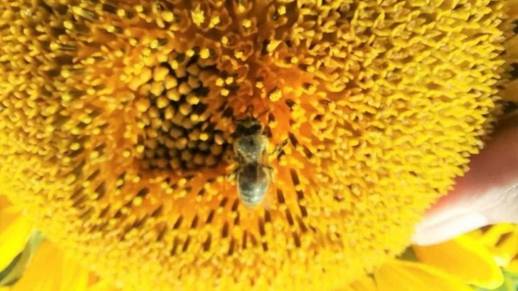 Arıların çiçekten çiçeğe konup güneşin altında dans ederek polen taşıması, İHA kamerası tarafından görüntülendi.