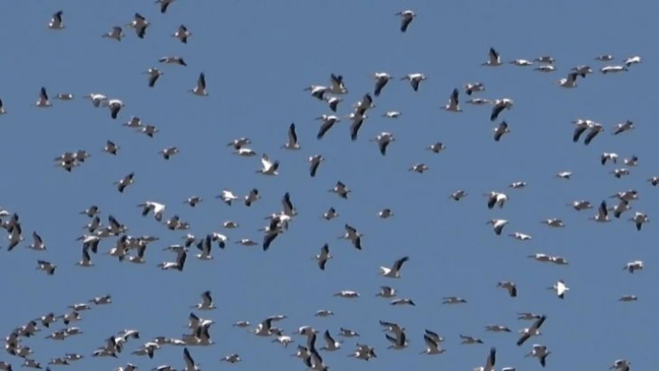 Pelikanların göçü görsel şölen oluşturdu