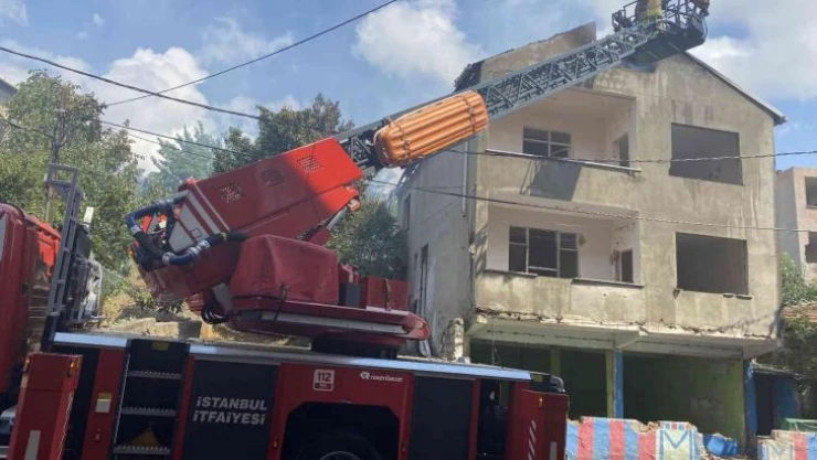 Pendik'te 2 katlı metruk binanın çatısı alevlere teslim oldu