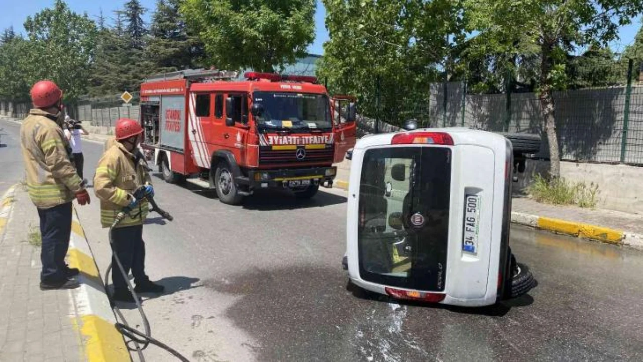 Pendik'te lüks otomobilin çarptığı ticari araç yan yattı: 1 yaralı