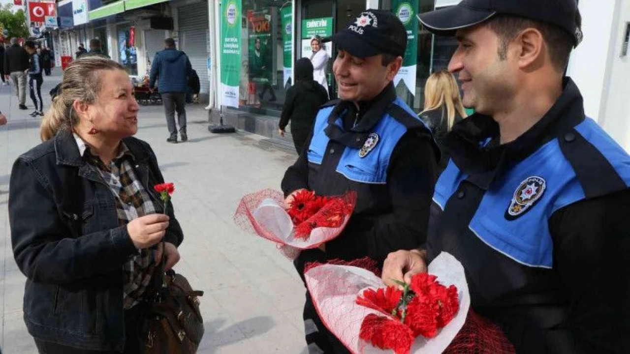 Polisler hem çiçek dağıttı hem de KADES'i hatırlattı