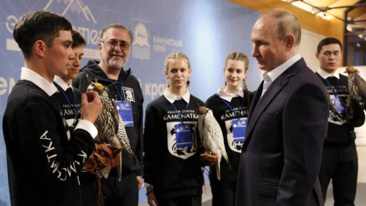 Rusya Devlet Başkanı Vladimir Putin, Rusya'nın Kamçatka Bölgesi'ne yaptığı ziyarette türü yok olma tehlikesiyle karşı karşıya olan bir şahini besledi.