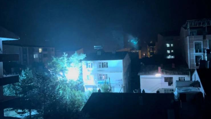 Erzurum'un Horasan ilçesi Kazım Karabekir Mahallesi'nde aşırı rüzgardan dolayı aşınan elektrik telleri birbirlerine sürterek patladı.