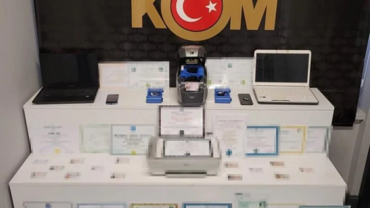 Kayseri İl Emniyet Müdürlüğü Kaçakçılık ve Organize Suçlarla Mücadele (KOM) Şube Müdürlüğü ekipleri tarafından yapılan çalışmalarda, sosyal medya üzerinden para karşılığı kimlik, sürücü belgesi ve diploma gibi belgelerin sahtesini yaparak çevre illere ve yurtdışına gönderim yapan şahıslar tespit edildi. Harekete geçen ekipler Kayseri ve Aksaray’da 3 farklı adrese eş zamanlı operasyon düzenledi. Düzenlenen operasyonda 19 adet sahte diploma, 8 adet sahte kimlik belgesi, 15 adet sahte sürücü belgesi, 1 adet ikamet izin belgesi, 7 adet muhtelif kart, 3 adet sim kartlı kartuş, 2 adet çipli boş kart, 2 adet laptop, 1 adet kimlik basımında kullanılan yazıcı, 1 adet renkli yazıcı ve 1 adet USB bulunurken, 2 kişi de yakalandı.