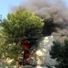 Adıyaman Küçük Sanayi Sitesinde çıkan korkutan yangında alevlerin arasında kalarak yüksekten düşen itfaiye eri yaralandı.