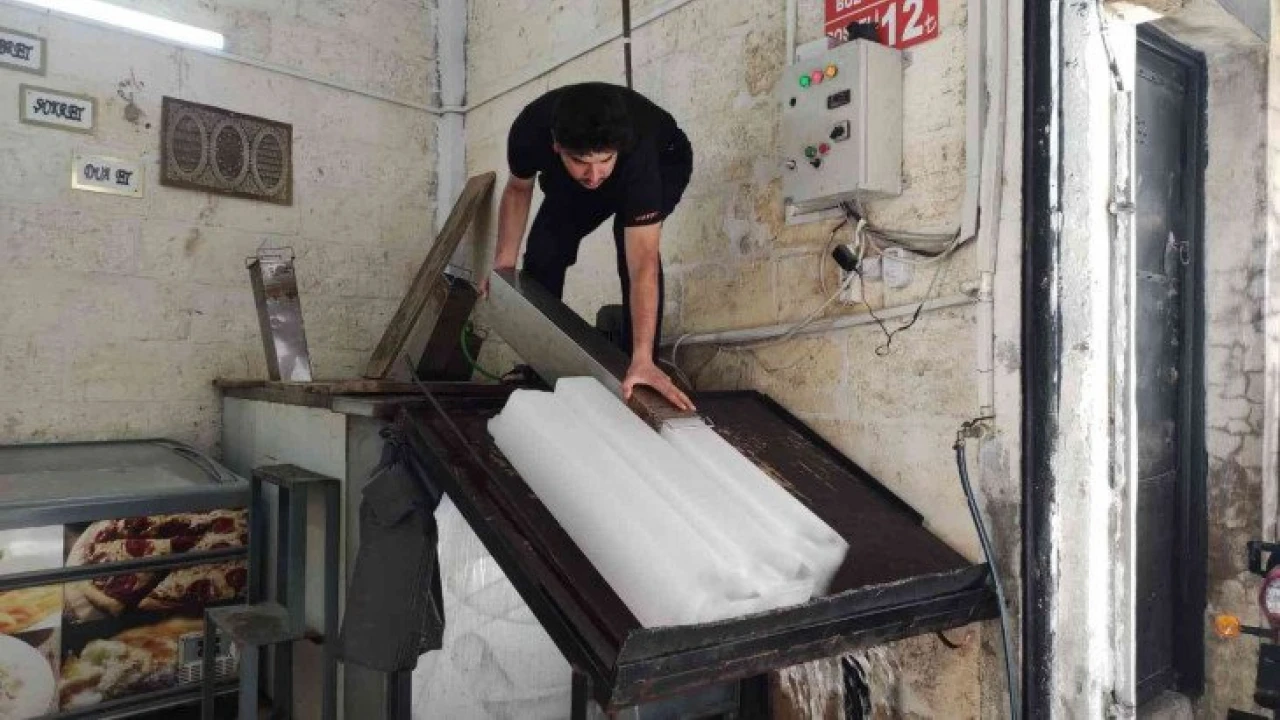 Şanlıurfa'da hava sıcaklığının 40 derecenin üzerine çıkmasıyla buz satışları iki katına çıktı.