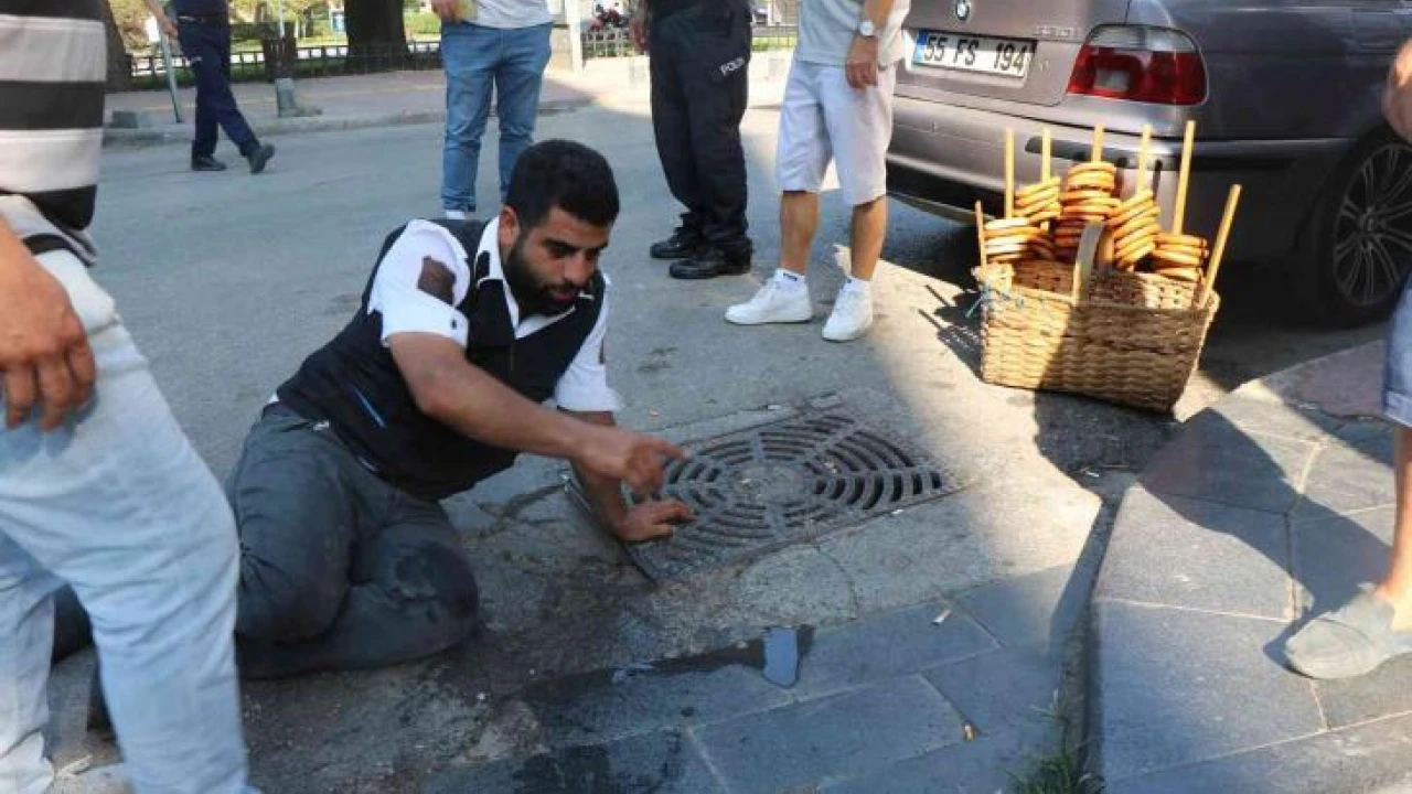 Samsun'da seyyar simitçilik yapan bir kişi sara nöbeti tutunca yolda baygınlık geçirdi. Şahsı, polis ve vatandaşlar yolun ortasından çekerek üzerinden araba geçmesini önledi.