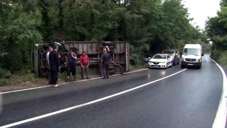 Sarıyer’de yağıştan dolayı kayganlaşan yolda sürücüsünün direksiyon hakimiyetini kaybetmesi sonucu kamyon devrildi. Olayda ölen veya yaralanan olmazken kamyonda maddi hasar meydana geldi.