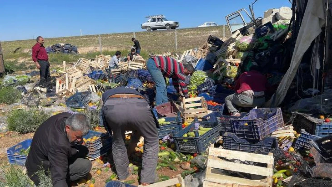 Şanlıurfa’da şarampole devrilen kamyonun sürücüsü ağır yaralanırken, kamyonun içerisinden saçılan sebzeler lavanta tarlasını sebze tarlasına çevirdi.