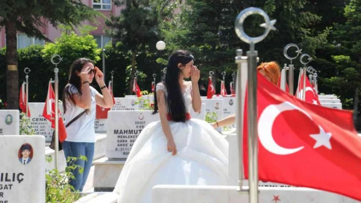 Başkent'teki şehitlikler, Babalar Günü sabahında ziyaretçiler ile doldu. Şehit aileleri, toprağa verdikleri canlarını mezarları başında anarken, bir şehit kızının ise gelinliği ile babasını ziyareti duygusal anlara sahne oldu.