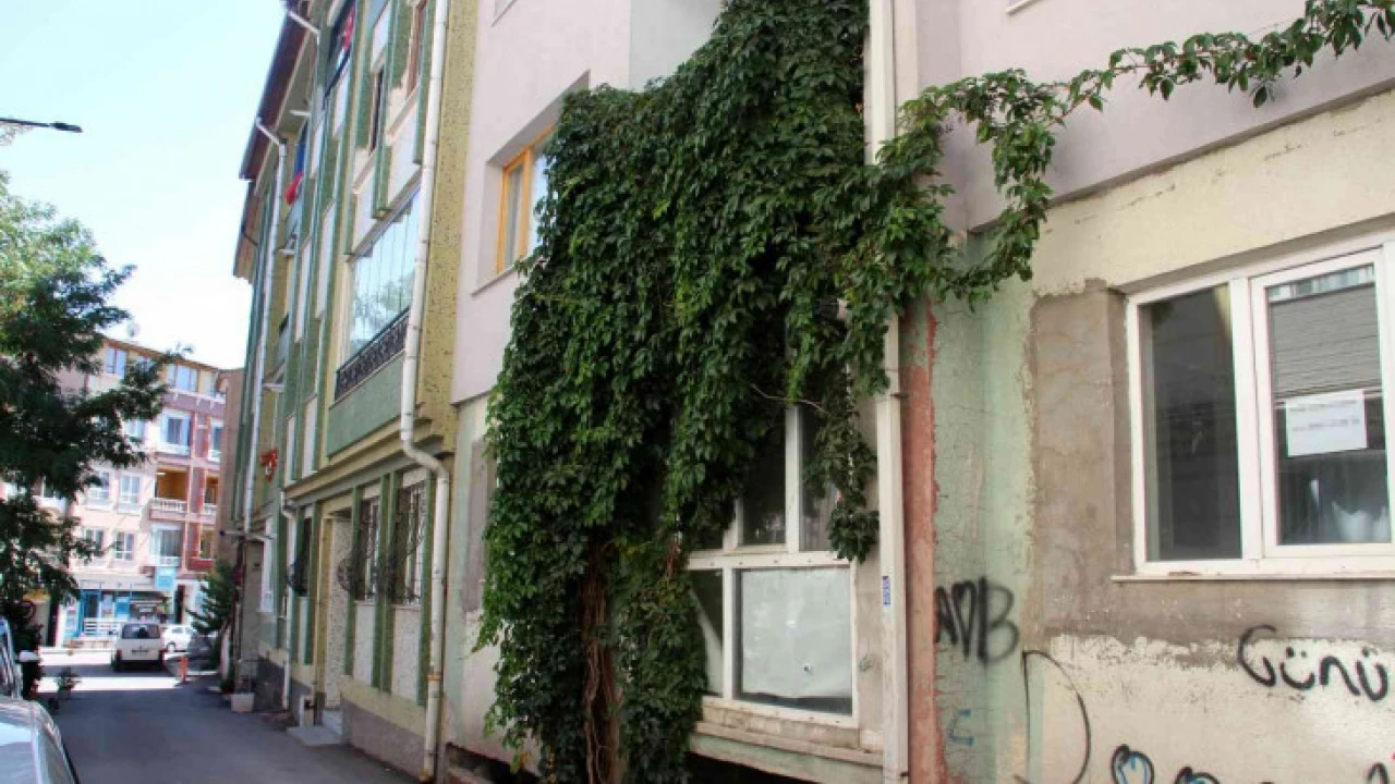 Sivas’ta bir apartmanın birinci katındaki balkonundan sarkan sarmaşık bitkisi adeta şelaleyi andırıyor.