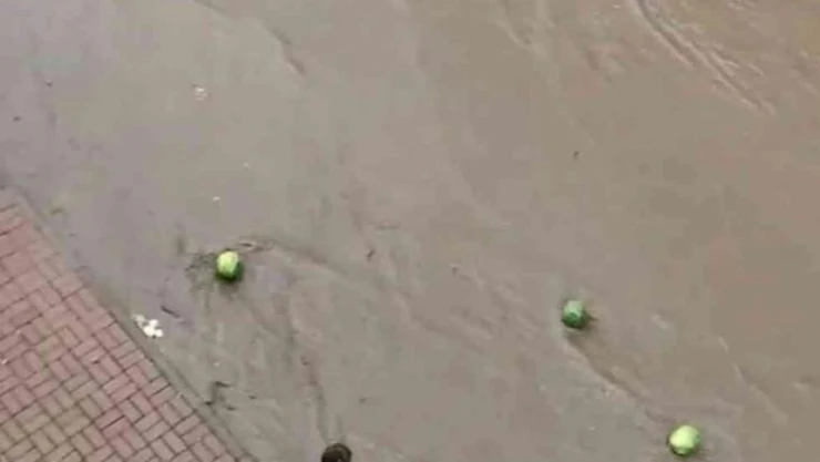Selde sürüklenen karpuzları vatandaşlar kurtarmaya çalıştı