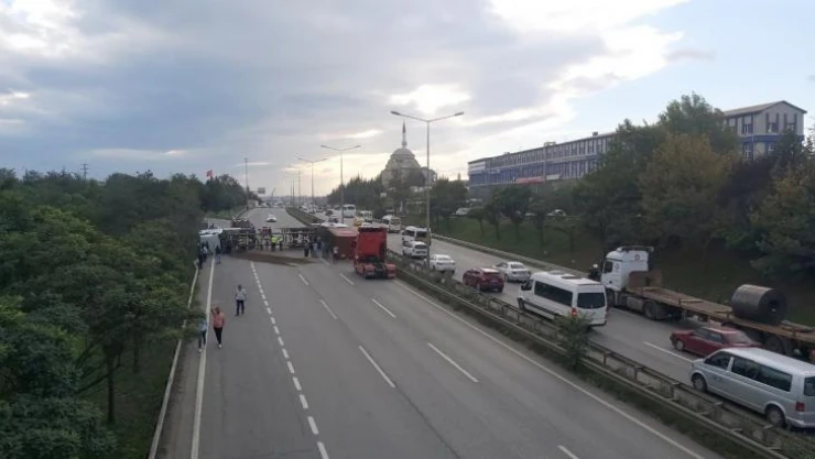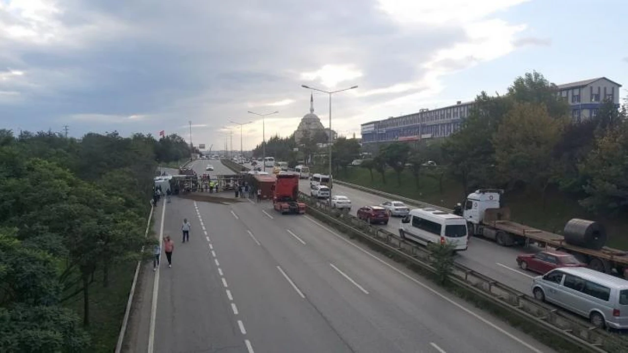 Kocaeli'nin Gebze ilçesinde tırın devrilmesi neticesinde seyir halinde olan servis aracı kazaya karıştı. Kazada 5 kişi yaralanırken, yol bir saat boyunca trafiğe kapatıldı.