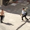Esenyurt'ta sevgilisi ile ayrı eve çıkmak isteyen şahsa, kızın ailesi kaldırım taşı ile saldırdı. Bıçakların da çekildiği olay, boks maçını aratmazken yaşanan o anlar çevredeki vatandaşların cep telefonu kamerasına yansıdı.
