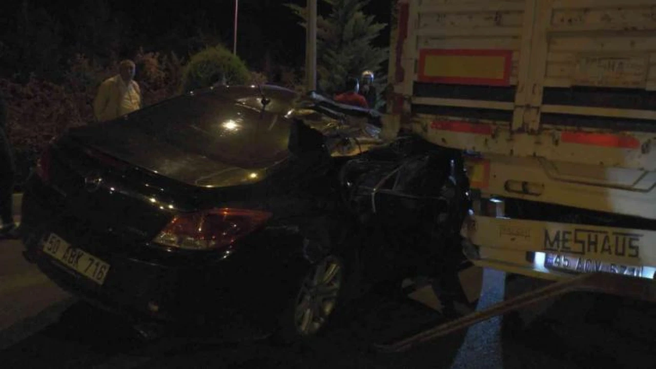 Nevşehir’de meydana gelen trafik kazasında 2 kişi yaralandı. Kaza gece saatlerinde 15 Temmuz Mahallesi, Şifa köprüsü alt geçidinde meydana geldi. Sürücüsü tespit edilemeyen 50 ABK 716 plakalı Opel marka araç, seyir halindeyken önünde seyreden 45 ACV 571 plakalı tıra arkadan çarpı. Çarpmanın etkisi ile tırın dorsesine saplanan otomobilde bulunan iki kişi yaralandı.