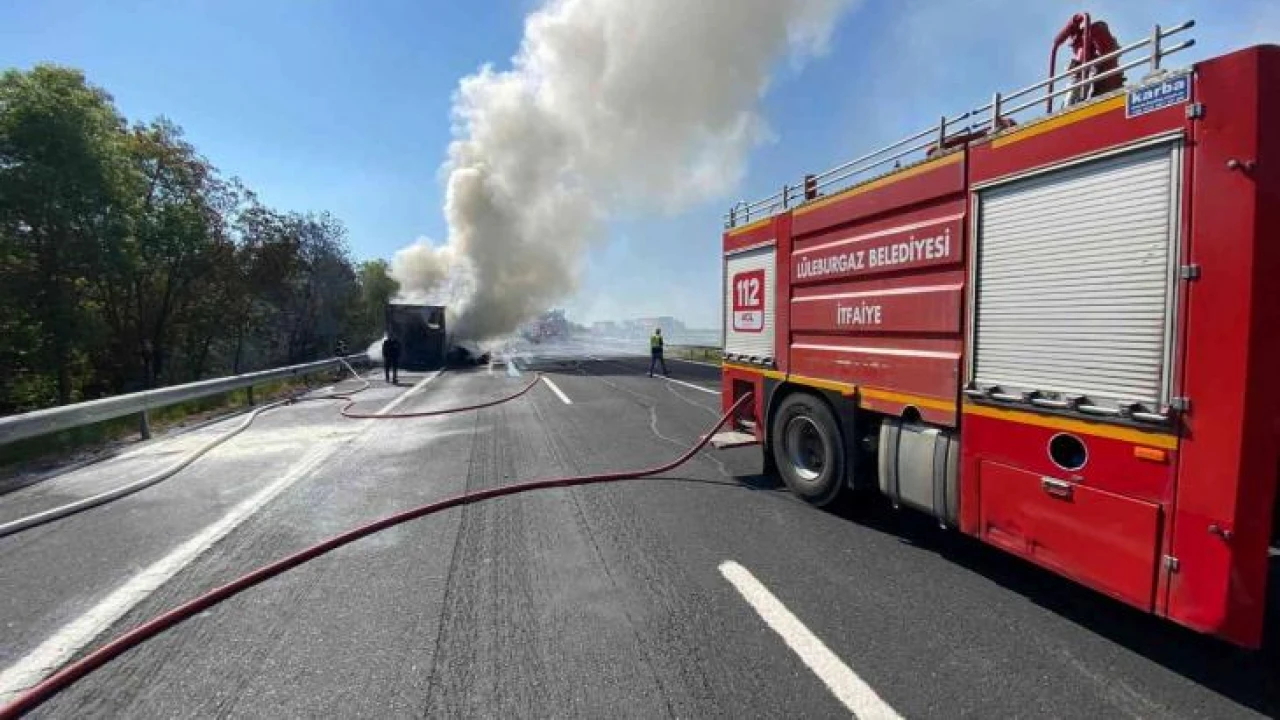 Olay, Edirne-İstanbul TEM Otoyolu’nda meydana geldi. Alınan bilgiye göre, Hakkı Tunalı idaresindeki H 1968 EK Bulgaristan plakalı tır seyir halindeyken Saray ilçesi Gişeler mevkiinde aniden yanmaya başladı. Aracını alev aldığını görünce yol kenarına çeken tır sürücüsü, durumu hemen itfaiye ekiplerine bildirdi. Olay yerine kısa sürede ulaşan Tekirdağ ve Lüleburgaz Belediyelerine ait itfaiye ekipleri yanan tırı söndürdü. Tır yangında kullanılamaz hale gelirken, olayla ilgili inceleme başlatıldı.