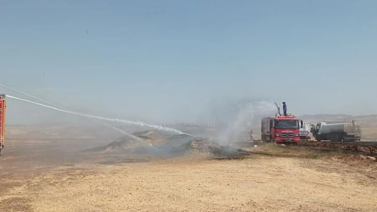 Siirt'te 2 bin dönüm arazi içerisinde çıkan yangında 100 ton buğday, buğday ve mercimek samanı küle döndü.