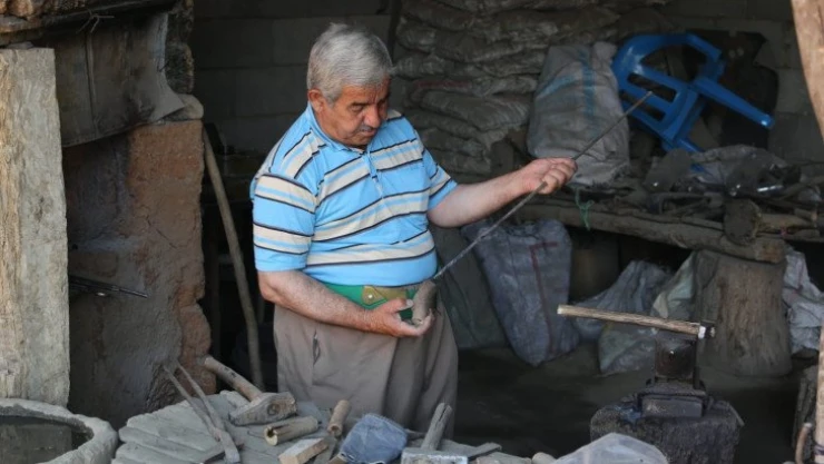Derecik ilçesinde yaşayan Mehmet Sönmez (70) baba mesleği olan demirciliği severek sürdürüyor. Yaklaşık 60 yıldır baba mesleğini zor imkanlara rağmen devam ettiren Sönmez, yaptığı işi severek ve mutlu olarak yapıyor. Taş ve topraktan yaptığı tek gözlü imalathanesinde sabahın ilk ışıklarıyla birlikte işe koyulan Sönmez, köylülerden gelen siparişleri yetiştirmeye çalışıyor.