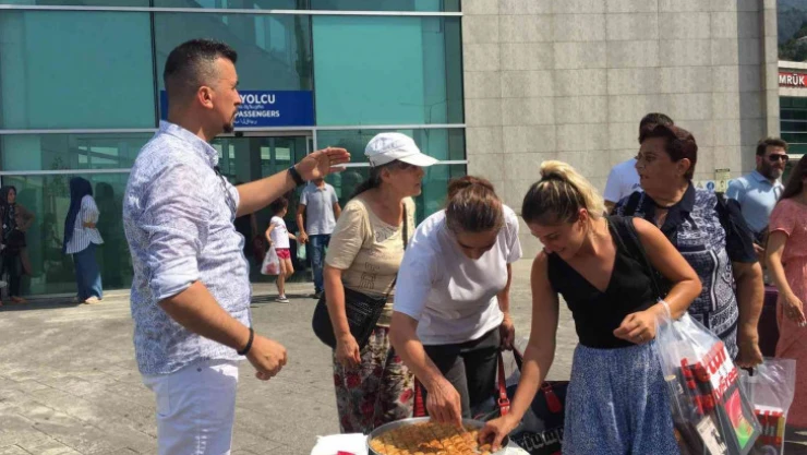 Artvin'in Kemalpaşa ilçesindeki Sarp Sınır kapısında bir vatandaş aldığı maaş primini Gürcistan'dan gelenlere tatlı ikram ederek harcadı.