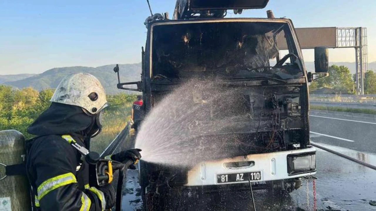 Olay, akşam saatlerinde TEM otoyolu Düzce Gişeler mevkiinde meydana geldi. Edinilen bilgilere göre, Ö.D. idaresindeki 81 AZ 110 plakalı Park ve Bahçeler Müdürlüğü’ne ait Ford marka sulama kamyonu Gişeler mevkiinde refüj sulama çalışmalarının ardından boşalan suyu tekrar depolamaya döndüğü esnada elektrik kontağından bir anda alev almaya başladı. Sürücü Ö.D. tankerde kalan son sular ile yangını söndürmeye çalışsa da başarılı olamadı. Bölgeye gelen İtfaiye ekiplerinin çalışması ile sulama aracındaki alevler söndürüldü. Tamamen küle dönerek kullanılamaz hale gelen araç, çekici vasıtası ile otoparka kaldırılmasının ardından trafik normal seyrine döndü.