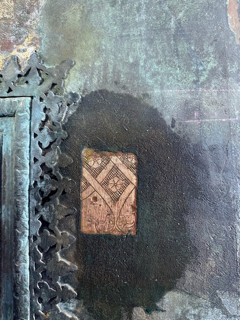 Ersoy, "Bunların tamamı kazıma tekniği ile yapılmıştır. Tam ortasında, yine ahşap taç kapılarda görülen, yarım küre, üzeri geometrik geçme desenli göbek parçaları vardır. Üst parçalar kitabelidir. Bunlardan soldakinde, "Ey Muhammed müminleri müjdele" sağdakinde ise, "Allah'tan yardım ve yakın bir fetih" yazısı yer almaktadır. Yatay serenlere, beşer tane girift rumi rölyef ve kazımalı rozet uygulanmıştır. Bunlardan sol kanat, alt kotundaki üç tanesi, düşmüştür ve mil yuvaları görülmektedir. Düşey serenlere, kündekari parçalar üzerindeki gibi, yine kazıma tekniği ile geçme zencerek ve rumi örgülü tığ motifleri, ardışık olarak işlenmiştir. Göbek parçalarını, kabartmalı, döküm olduğunu tahmin ettiğimiz bronz çıtalar çerçevelemiştir. Bunların bir kısmı dökülmüştür. Müthiş bir sanat eseri olan kapı kanatlarını, diğer avlu yan kapıları gibi, ünlü vaka-i nüvistimiz Evliya Çelebi'nin babası, kuyumcu Zılli yapmıştır.” dedi.