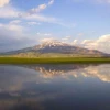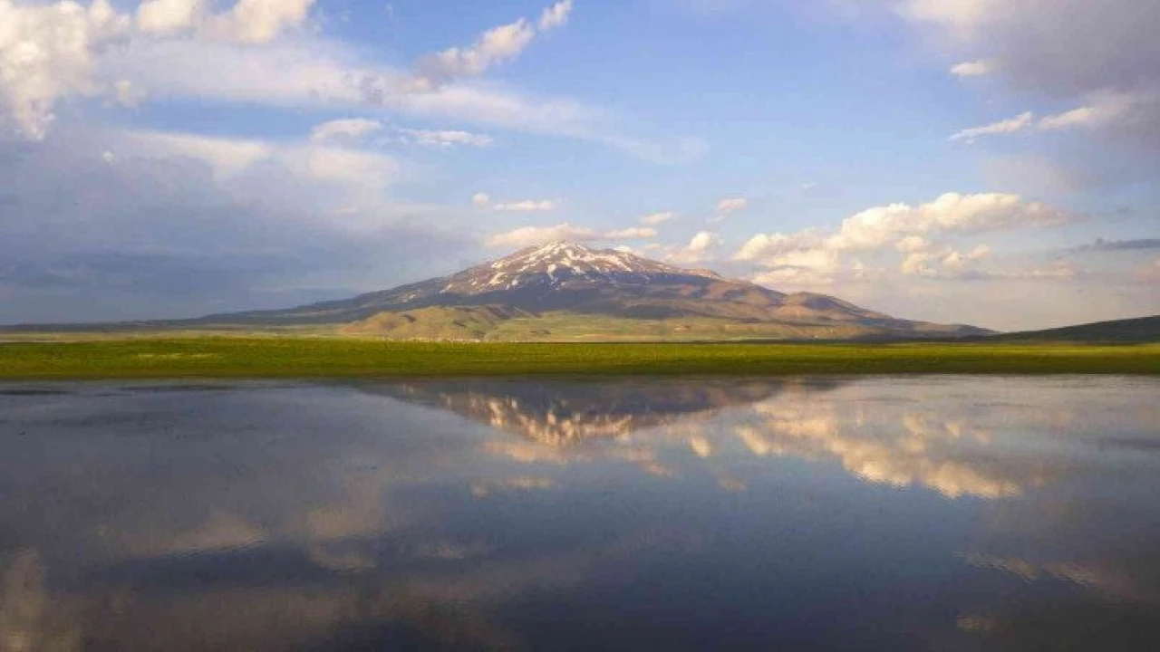 Süphan Dağı'nın Cil Gölü'ne yansıması kartpostallık görüntüler oluşturdu