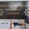 Edinilen bilgiye göre, Narkotik Şube Müdürlüğü Analiz Büro Amirliği ile Seydişehir Narkotik Grup Amirliği ekiplerinin ortak çalışmasında Z.K. idaresindeki şüpheli bir araç durduruldu. Araç detaylı arama yapılmak üzere İlçe Emniyet Müdürlüğüne çektirildi. Yapılan inceleme neticesinde araçta bulunan boya kutusunun içerisine gizlenmiş 1 kilo 56 gram ’skunk’ maddesi ele geçirildi. Esrarın hammaddesi Hint kenevirinin laboratuvar ortamında diğer uyuşturucu maddelerle hibritleştirilerek elde edilen skunk’un esrardan 20 kat daha fazla bağımlılık yapıcı özelliği bulunduğu belirtildi. Gözaltına alınan araç sürücüsü Z.K., uyuşturucu madde ticareti yapmak suçundan adliyeye sevk edildi.