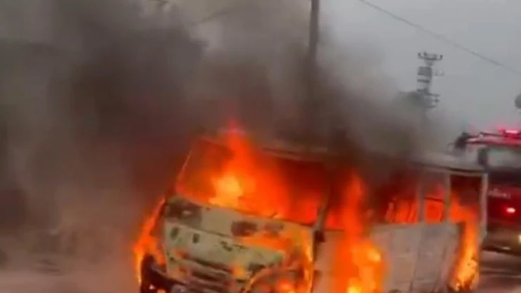 Mersin'in Tarsus ilçesinde tarım işçilerini taşıyan servis aracı alev alev yandı.