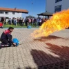 Aydın’ın en uzak ilçeleri arasında yer alan Karacasu’da Adnan Menderes Üniversitesi (ADÜ) Karacasu Memnune İnci Meslek Yüksek Okulu tarafından tatbikat düzenlendi. Senaryo gereği okulun elektrik trafosunda çıkan yangın ve patlamayla birlikte okulun İSG uzmanları ve afet görevlileri tarafından hızla tahliye edildi. Olay yerine gelen 112 ekipleri yaralıların tahliyesini ve tedavi sürecini takip etti. Aynı anda şüpheli paket ihbarı ile olay yerine gelen bomba imha ekipleri robot yardımıyla güvenli bir alana götürerek fünye ile kontrollü şekilde patlatma işlemini gerçekleştirdi. Aksiyon dolu sahnelerin yaşandığı tatbikatta yine aksiyon sahnelerini aratmayan uygulamalı eğitimler gerçekleştirildi. İtfaiye ekipleri tarafından evlerdeki gaz parlamalarında ve yangın söndürme tüplerinin kullanımlarında doğru bilinen yanlışlar anlatıldı. Öğrencilerin büyük bir heyecanla dahil olduğu tatbikat değerlendirme açıklaması ve görev alanların toplu şekilde hatıra fotoğrafı ile son buldu.