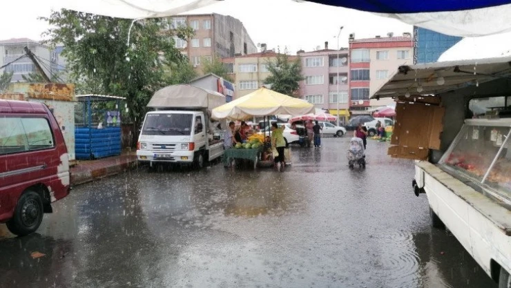 Tekirdağ’ın Muratlı ilçesinde aniden bastıran yağmur hayatı olumsuz etkiledi. Yağmurun şehirde kurulan ilçe pazarıyla aynı güne denk gelmesiyle vatandaşlar ve pazaryeri esnafı zor anlar yaşadı. Bazı vatandaşlar yağmurdan korunmak için çatıların altına sığınırken, bazı vatandaşlar ise pazaryeri esnafının kurduğu branda ve şemsiyelerin altlarında bekledi.