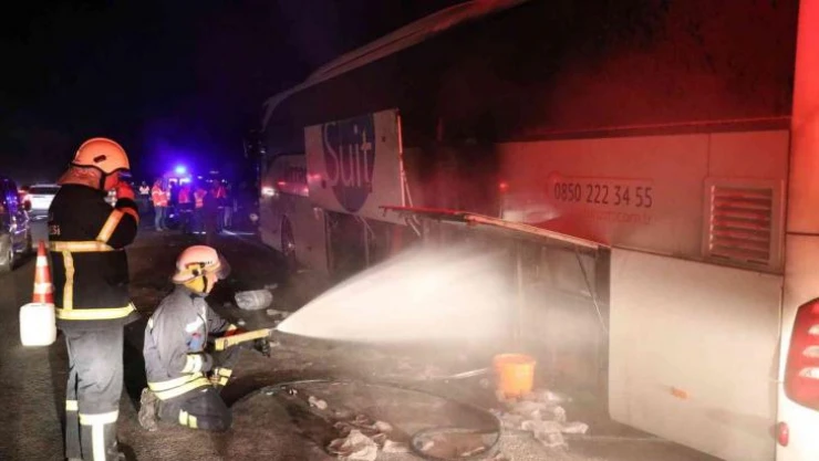 Yangın çıktığı sırada uyuduğunu söyleyen bir yolcu, “Aracın lastiği patladı. Patlak lastikle devam ettikten sonra dumanlar çıkmaya başladı. Muavin yangın olduğunu söyledi. Başka bir otobüs geleceğini söylediler. Burada bekliyoruz” dedi.
