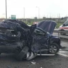 TEM'de turistleri taşıyan minibüs, kaza yapan araçlara çarptı: 4 yaralı