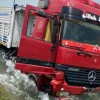 Mersin’in Tarsus ilçesinde sürücüsünün direksiyon hakimiyetini kaybettiği tır sulama kanalına düştü.