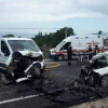 Bursa’nın Gemlik ilçesinde yerli otomobil fabrikası TOGG girişinde yol çalışmasının yapıldığı noktada, otomobil ile karayollarına ait kamyonet kafa kafaya çarpıştı. Çarpışmanın şiddetiyle otomobil ve kamyonet hurdaya dönerken, 1 karayolları personeli ve otomobildeki iki kişiden 1’i ağır yaralandı. Kazayı gören diğer çalışanlar 112 Acil Çağrı Merkezi’ne ihbarda bulundu. Kısa sürede olay yerine gelen sağlık ekipleri yaralılara ilk müdahalenin ardından ambulanslarla Gemlik Devlet Hastanesine kaldırdı. Fabrikaya giden ve yapımı devam eden yolda kaza nedeniyle çalışmalar durduruldu. Feci kazada, otomobilin yoldan çıkarak yol yapımında görevli karayollarına ait kamyonetle kafa kafaya çarpıştığı öğrenildi.