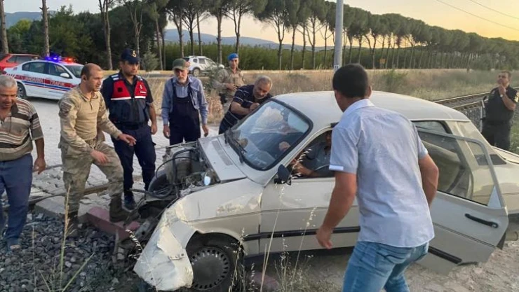 Alınan bilgiye göre kaza, saat 21.30 sıralarında, Manisa’nın Yunusemre ilçesi Muradiye Mahallesi’nde meydana geldi. Muradiye Mahallesi’ndeki hemzemin geçitte İzmir-Uşak seferini yapan yolcu treni, kontrolsüz şekilde hemzemin geçide girdiği iddia edilen 45 ZC 3500 plakalı otomobile çarptı. Trenin çarpma şiddetiyle otomobilin ön kısmı parçalanarak tren raylarına sıkıştı. Hurdaya dönen otomobilde, sürücü İsmail Kırlı (51) ve yolcu konumundaki eşi Gülten Kırlı (49) kazayı yara almadan atlattı. Tren raylarına sıkışan otomobil, jandarma ve çevredeki vatandaşlar tarafından sıkıştığı yerden çıkartıldı. Yaklaşık yarım saat kaza nedeniyle rötar yapan tren, otomobilin raylardan çıkarılmasının ardından seferine devam etti. Kazayla ilgili jandarma ekipleri tarafından çalışma başlatıldı.